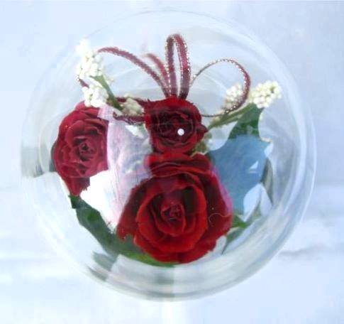 ギフト対応 サイズ --- 直径13×高さ15cm、 花器:アクリル製ドーム、 花材:プリザーブドローズ・フェイクアイビー・小花・リボン