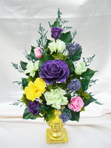 お仏壇や神棚のお供えアレンジ 花器付仏花 雅大輪の紫 プリザーブドフラワー