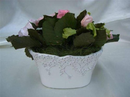 ギフト対応 10月生まれの方へのプレゼントに チャームは10月の誕生石オパール(今回は品の良いピンク色のピンクコモンオパールを使用)・人工パール・ローズクウォーツ・スワロフスキークリスタルで出来ています。 ペンダントや携帯ストラップにご使用ください。バラの色は変更可能です。 ※サイズ:幅23×奥行15.5×高さ16.5cm 花器:陶器 花材:プリザーブドローズ・プリザーブドファーガス・プリザーブドサンウィーバイン・フェイク忘れな草・リボン