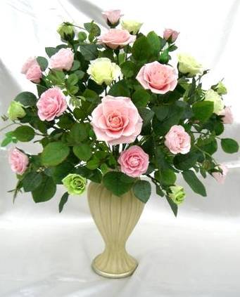 ギフト対応 新築祝い・開院祝い・などのお祝い事に最適なかなりインパクトのあるアレンジです。 優しい色合いが周りを明るく包みます。 ※サイズ幅45×奥行25×高さ56cm 花器:陶器 花材:プリザーブドローズ・プリステム・フェイクローズステム