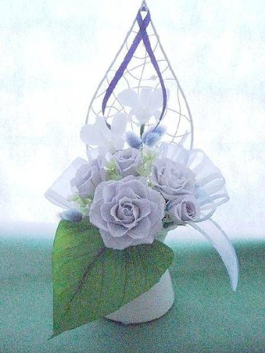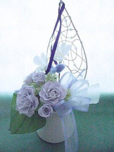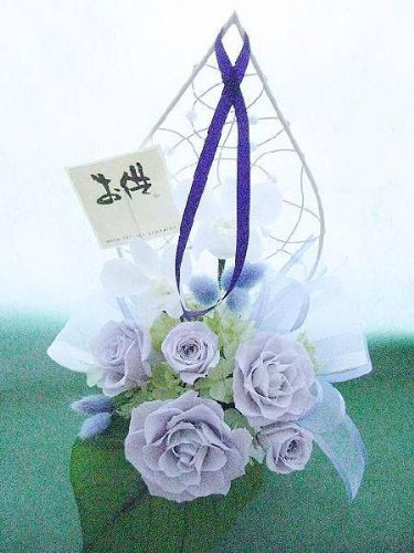 お仏壇のお供え淡藤色のバラとデンファレの優しいアレンジプリザーブドフラワー