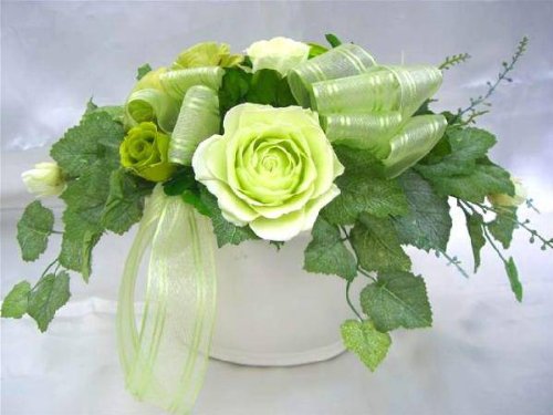 ギフト対応 3ヶ月程度はバラの香りをお楽しみいただけます。 チャームは8月の誕生石ぺリドット(イブニングエメラルド)・水晶・淡水パール・スワロフスキークリスタルで出来ています。 ペンダントや携帯ストラップにご使用ください。バラの色は変更可能です。 ※サイズ:約幅33×奥行25×高さ19cm 花器:陶器 花材:プリザーブドローズ・アジサイ・フェイクフロストアイビー・カルーナブッシュ・ソーラーローズ・リボン