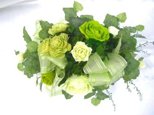 天然誕生石アクセサリー付 8月のバースデーフラワー香るバラ豪華なオーバルアレンジ爽やかなグリーングラデーションのバラプリザーブドフラワー