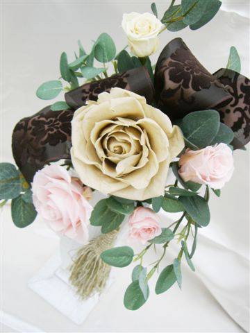 スレンダーアレンジ ロンド ベージュ&ピンクのバラのアレンジ