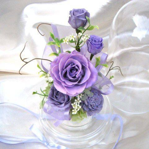 ドーム入りアレンジ萌新色ライラックのバラプリザーブドフラワー