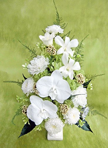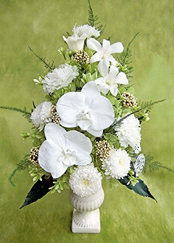 ギフト対応 胡蝶蘭を使用した高級感のある、彗華(すいか)=トップから下に向かってほうきのように流れるアレンジ、仏花としても店舗ディスプレイや玄関・リビングにもとても良く合います サイズ:幅20×奥行14×高さ38cm 花器:陶器 花材:プリザーブド胡蝶蘭・プリザーブドカーネーション・プリザーブドスプレーマム・プリザーブドデンファレ・プリザーブドあじさい・プリザーブドライスフラワー・プリザーブドリーフ・フェイクミニシーホーリー・シルバーの蓮