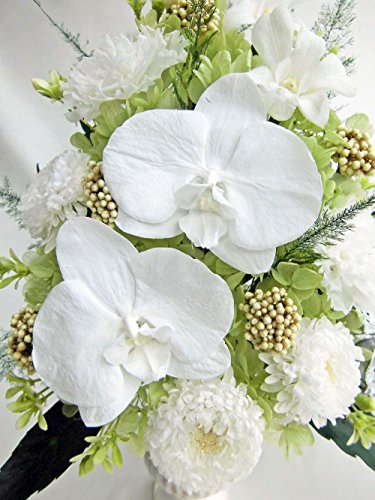 彗華 純白の胡蝶蘭と薄緑色の小花のニュアンスアレンジ プリザーブドフラワー