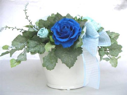 ギフト対応 9月生まれの方へのプレゼントに 3ヶ月程度はバラの香りをお楽しみいただけます。 チャームは、強運を呼び込むというラピスラズリとパワーストーンの代表である水晶、 そして9月の誕生石サファイア色のスワロフスキークリスタルで出来ています。バラの色は変更可能です。 ※サイズ:約幅33×奥行25×高さ19cm 花器:陶器 花材:プリザーブドローズ・フェイクフロストアイビー・カルーナブッシュ・ソーラーローズ・リボン