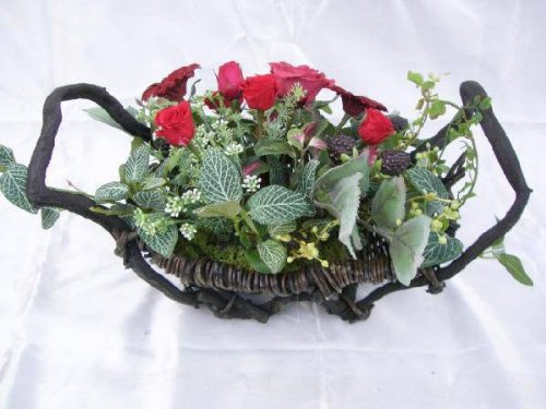 ギフト対応 サイズ --- W12×D12×H19cm 光触媒加工を施しました。 光反応により簡単に自浄作用が起こせます。 (消臭・除菌・防汚・UVカット) ナチュラル感溢れるカゴにプリザーブドローズ・ガーベラを観葉植物のフェイクリーフたっぷりの中にあしらってみました。