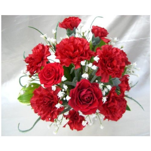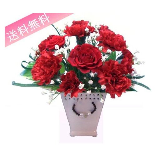 ギフト対応 花びら一枚一枚から作り上げていく商品ですので、 製作に1週間ほどお時間かかる場合がございます。 その分、丁寧で美しいものをお届けいたしますので 少々お時間いただく事をご了承くださいませ。 ゴージャスな真っ赤なカーネーションを沢山贅沢に使用したバラとカーネーションのアレンジです。 カーネーションは上質なフェイク素材を使用しています。 金色のルチルクォーツは金運財運UPの石レッドタイガーアイも金運財運UP ? クリスタルクォーツは悪い物を浄化する作用があると言われています。 サイズ:幅23×奥行18×高さ24cm 花器:陶器 素材:プリザーブドローズ・フェイクカーネーション・フェイクカスミ草・フェイクナルコラン カラーバリエーション:レッドのみ パワーストーン:ゴールドルチル・クリスタルクォーツ・レッドタイガーアイ