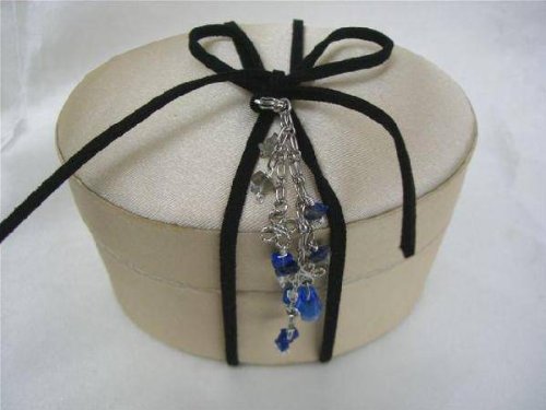 ギフト対応 3ヶ月程度はバラの香りをお楽しみいただけます。 チャームは、強運を呼び込むというラピスラズリとパワーストーンの代表である水晶、 そして9月の誕生石サファイア色のスワロフスキークリスタルで出来ています。 ペンダントや携帯ストラップにご使用ください。バラの色は変更可能です。 ※BOXサイズ:約幅10.5×奥行7.5×高さ7cm 花器:ベージュ色サテン布張りオーバルボックス 花材:プリザーブドローズ・フェイクフロストアイビー・アキレア