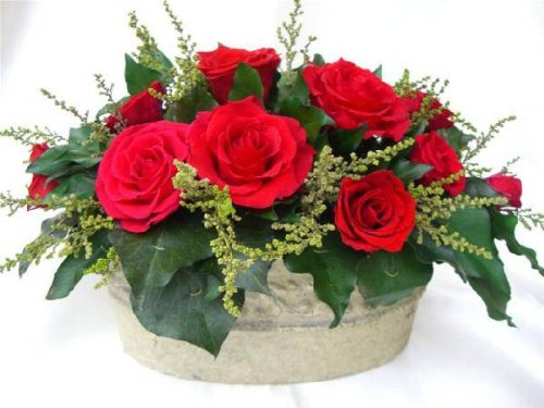 豪華な赤いバラ10輪の寄せ植え風アレンジ プリザーブドフラワー
