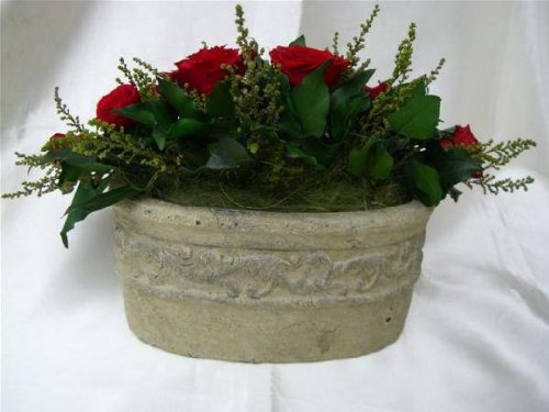 ギフト対応 赤い大輪のバラが豪華で華やかな印象を与えます。 誕生日祝い・新築祝い・結婚お祝い・開店祝い・開業祝いなどにいかがですか? ※サイズ:幅35×奥行20×高さ25cm 花器:テラコッタ 花材:プリザーブドローズ・プリザーブドアイビー・プリザーブドストーベ