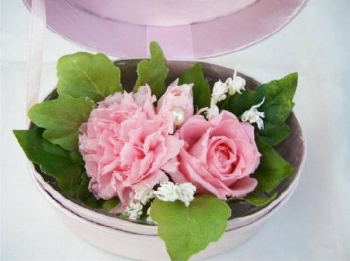 香り付のバラとカーネーションのプチアレンジ 天然石ジュエリー付 プリザーブドフラワー