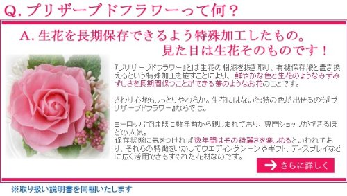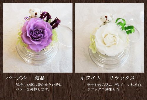 - 花材:プリザーブドローズ・プリザーブドあじさい・プリザーブドかすみ草・リボン・ベルベアピック