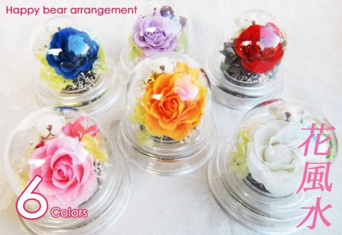可愛いクマさんと風水カラーのドームアレンジ プリザーブドフラワー (レッド)