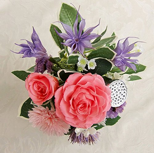 プリザーブドフラワー 小さめの 仏花 お仏壇 お供え 桃色 の 想い バラ アレンジ 花瓶付