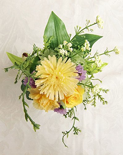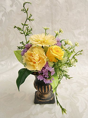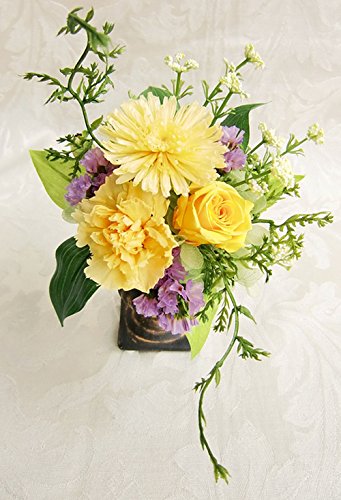 プリザーブドフラワー 小さな小さな野花の 仏花 お仏壇 お供え 黄色 菊 カーネーション バラ アレンジ 花瓶付