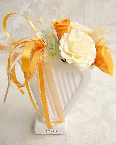 ハープの美しい音色イエローカクテル ハープの形をした白い陶器に 明るい黄色のバラをアレンジしました 音楽の演奏会の記念やお祝い 発表会・ベビーギフトに人気です♪ ご相談いただければお花の色違いもお作りできます ホワイトデー・フラワーバレンタインデー・誕生日・バースデー・母の日・敬老の日など各種ギフトに♪