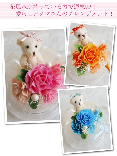 Lovely Happy Bear 花風水 パワーストーン ダブル パワー ドーム 入 くまさん ピンク バラ アレンジ