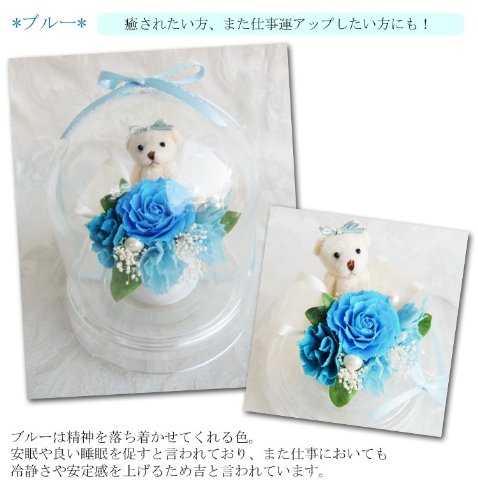 Lovely Happy Bear 花風水 パワーストーン ダブル パワー ドーム 入 くまさん 青い バラ ブルーローズ アレンジ