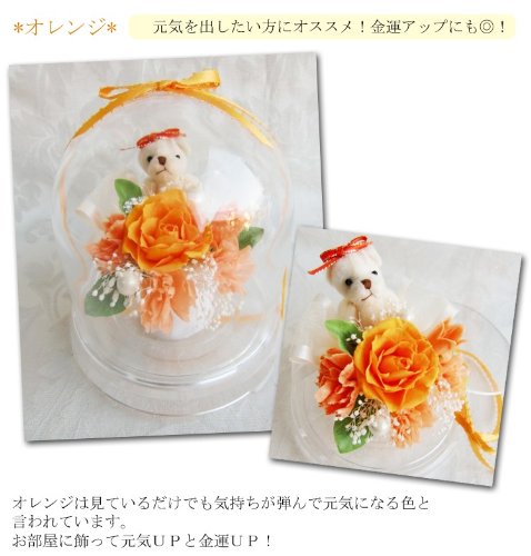 Lovely Happy Bear 花風水 パワーストーン ダブル パワー ドーム 入 くまさん オレンジ バラ アレンジ