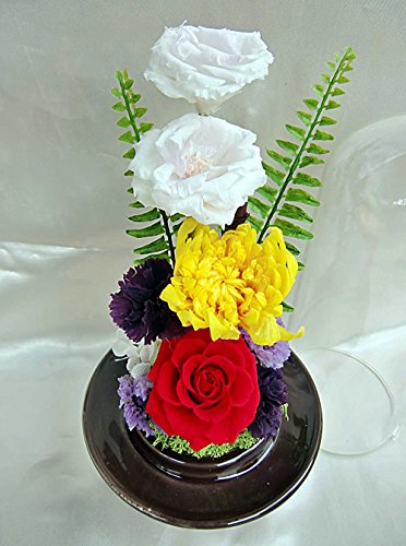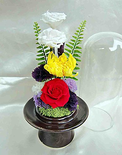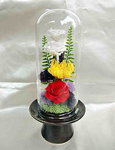一人暮らしのお年寄りや 外出がちなあの人へのギフトにいかがですか? お掃除簡単♪ガラスケースで覆われたアレンジ 画像の箱入りでお届けします お盆・お彼岸・帰省・仏事のギフトに人気です