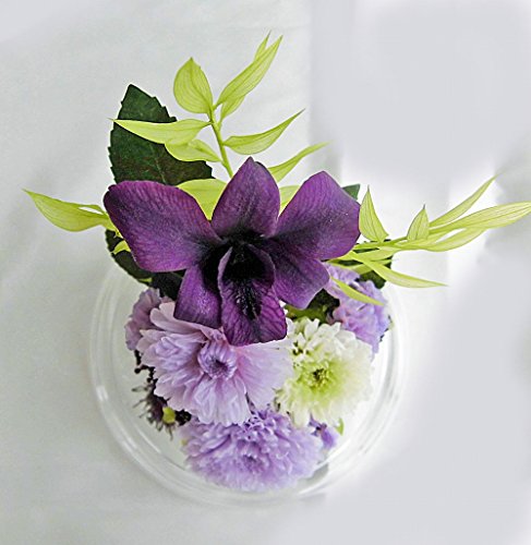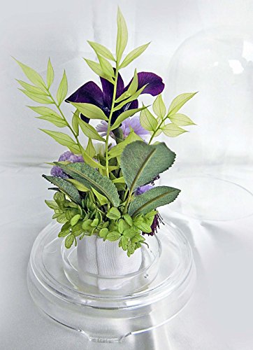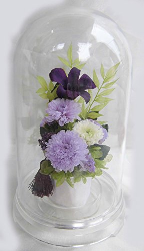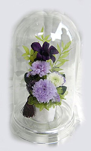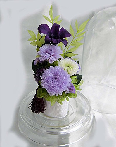 品の良い紫色の濃淡が印象的! むらさきは古来より高貴な色 紫が大好きな故人へのギフトに 綺麗なアクリルドームに入ったお仏壇のお供えアレンジ