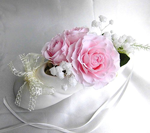 陶器のトゥシューズの中に 可愛らしくふんわりとアレンジしました 透明の塩ビケースに入れてのお届けになります ケースに入れたままでも壁にかけて飾っても素敵です バラの花の色は要相談で変更可能です。 バレエの発表会、出産祝い、バースデープレゼントに♪