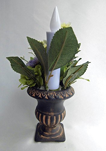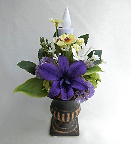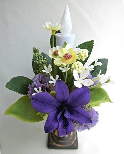 お仏壇 お供え 電池式 キャンドルと花瓶付 小さな 小さな 仏花 祷 紫のデンファレ アレンジ 咲き続ける 生花 プリザーブドフラワー