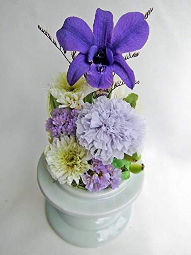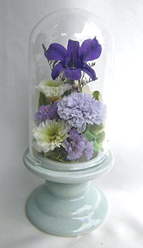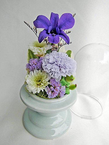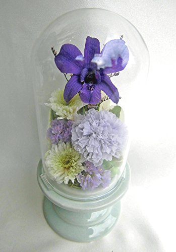 お仏壇 お供え ガラスドーム入 仏花 祈り 紫のデンファレ アレンジ 咲き続ける 生花 プリザーブドフラワー