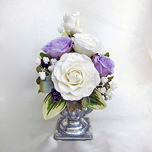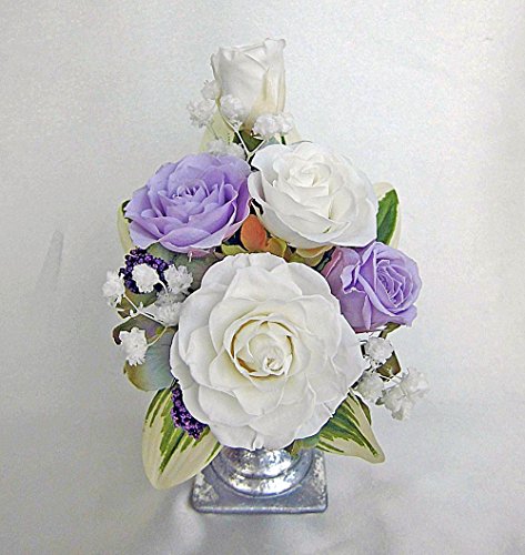 お盆やお彼岸お中元お歳暮お仏壇のお供えギフトに♪ 白と紫のバラが心静かに華やかな故人を偲びます。 価格はリーズナブルですが職人の技術が光る逸品です。