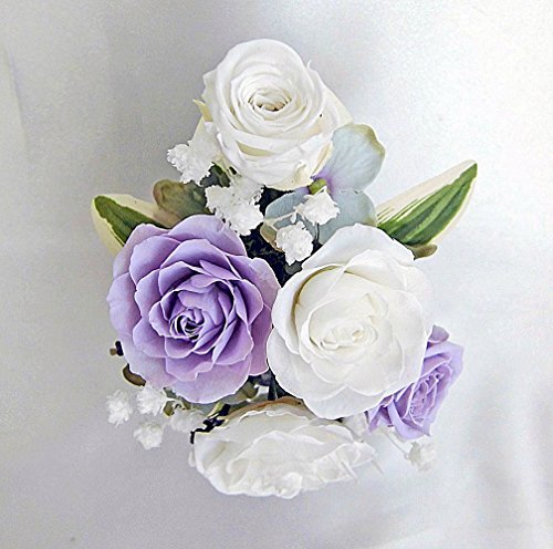 花器付 小さな 仏花 悠 白と紫のバラの アレンジ 咲き続ける 生花 プリザーブドフラワー