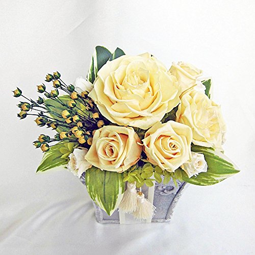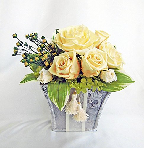 訳あり展示品 クリームアイボリーの大きめのバラのアレンジ プリザーブドフラワー