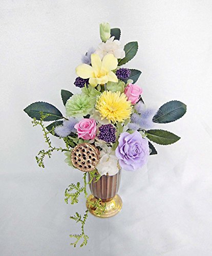 品良い明るい色合いの様々なお花が 大切な人のお仏壇を華やかに彩ります 花瓶付きなのでそのまま飾れお水替えの心配も不要です お盆・お彼岸・帰省・仏事のギフトに人気です
