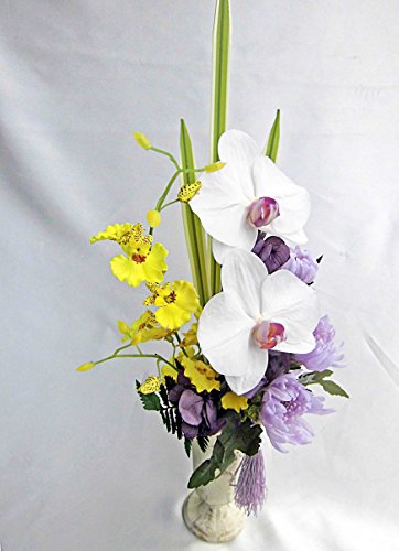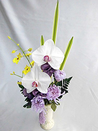 高さのあるアレンジです サイズに注意!! 華やかな胡蝶蘭とオンシジュウムを使用していますが 輪菊の淡藤色が全体を優しく落ち着いた雰囲気にしています お盆・お中元・お彼岸・お歳暮ギフトに人気です♪