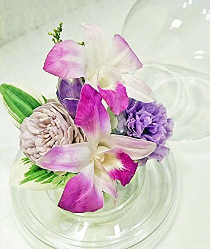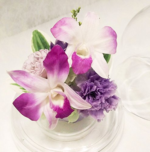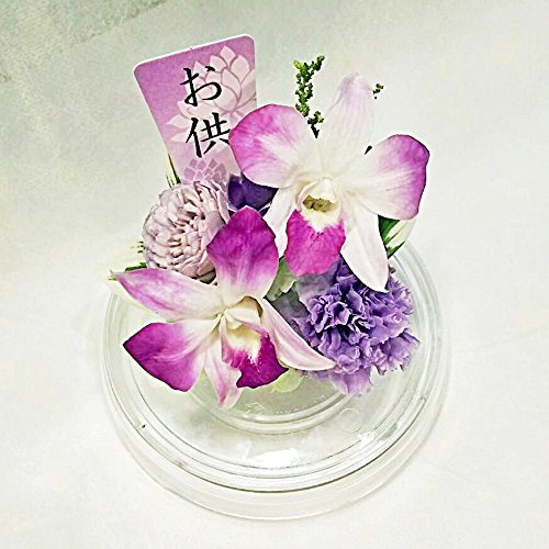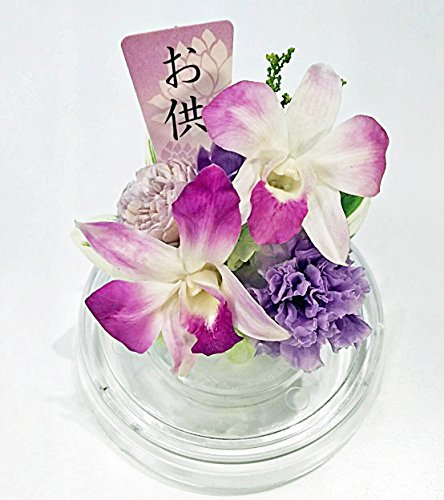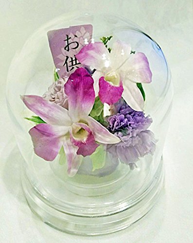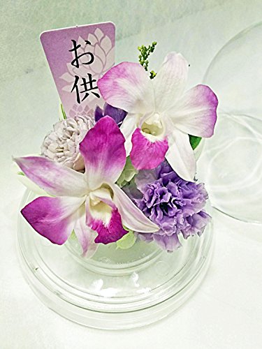 お仏壇 お供え ドーム入 祈り 凛としたデンファレときれいな藤色のカーネーションのアレンジ 咲き続ける 生花 プリザーブドフラワー ギフト