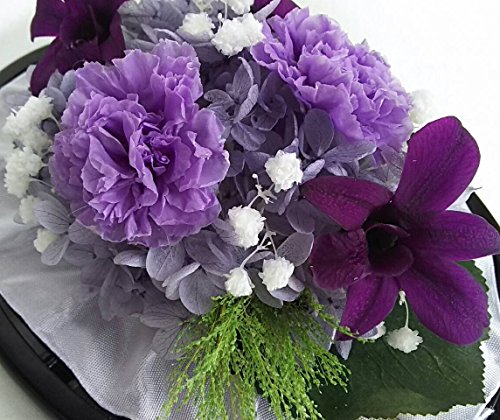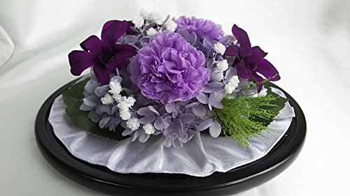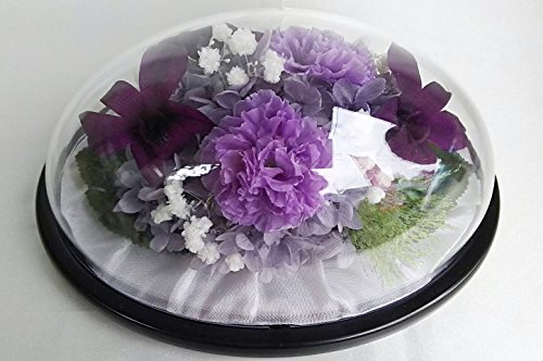 シックな紫のデンファレとカーネーションを使用したドーム入りアレンジです 各種お返しや、贈り物にいかがですか? ホワイトデー 母の日 プレゼント 誕生日 バースデー 敬老の日など各種ギフトに人気です♪