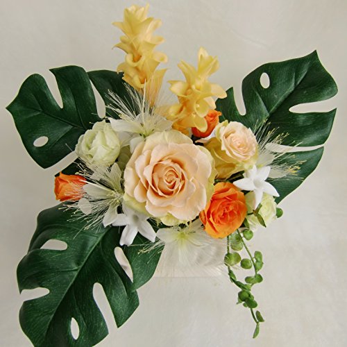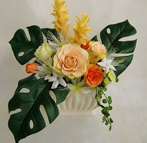 ハワイアンテイストのアレンジ ハワイアンのお店・ハワイ大好きなあの人のギフトに♪ サイズ 横幅28cm 奥行20cm 高さ27cm
