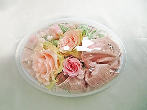 オーバルドームの中に花がギュッと詰まった壁掛けにもなるピンクのバラのアレンジ プリザーブドフラワー
