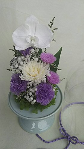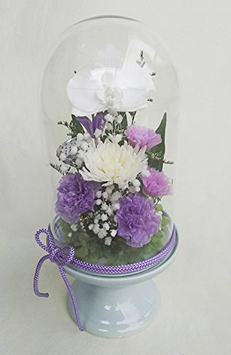 仏花 Lサイズガラスドーム入 偲い 胡蝶蘭と輪菊淡藤色の小花アレンジ 咲き続け る生花 プリザーブドフラワー ギフト