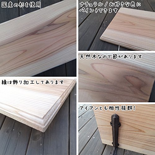 国産の杉の木を使用した無垢の棚板です。 ツリーハウスで加工した当社のオリジナル商品です。 ふちは面取りし飾り加工してあります。 塗装は全くしておりません。お好きな色やオイルを塗ってアレンジしてご使用下さい。 サイズは60×20、60×26、90×20、90×26の4種類あります。 ほかに『ワコトオイル』を塗ったタイプ、ホワイトペイントしたものもございます。 何を飾ろうか思わずワクワクしてしまう、魅せる収納にピッタリのとっておきのディスプレイゾーンがあっと言う間に完成します。
