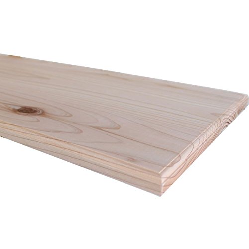 国産の杉の木を使用した幅はぎ集成材の棚板です。 一般的な集成材が小さなブロック状の木を縦横に接合しているのに対し、幅はぎ材は縦方向は1枚の細長い無垢板となっていて、それを横方向にだけ接合して作られています。 ですから1枚1枚の細長い木材は無垢材となっております。 1枚でこの範囲の無垢材を使用するより、接合することで反りにくく割れにくくなる為多くの方にこの集成材は好まれています。 また節埋め加工している為、自然の木材らしい風合いを残した1枚となっております。 ふちは面取り飾り加工を施しており、よりナチュラルで繊細なデザインとなっております。 お部屋の空いた壁面にブラケットを取り付けその上に棚板をのせるだけで、簡単にオリジナルの棚が完成できます。 収納に使ったり、アートピースを飾ったりとお好きにお使い下さい。 塗装は全くしておりませんので、お好きな色やオイルを塗ってアレンジしてご使用されるのもお勧めです。 当店で取り扱っておりますブラケットと一緒にご使用下さいませ。