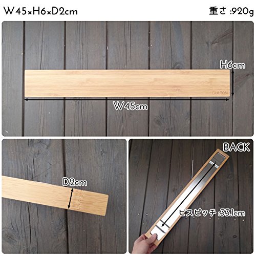 - 【ご注意】※イメージ画像で使用している調理器具等は付属されません。 ※ナイフホルダーとしてご使用する際は、必ずナイフが固定された事をご確認下さい。 ※設置する際には、設置場所にご注意下さい。(約5kg以上の負荷に耐えられる場所をお選び下さい。)外した時に、跡が残っても差し支えのない所に取り付けて下さい。 ※壁に取り付けたネジが緩んでいますと、落下の恐れがあり、ケガや破損などの原因となります。定期的にネジに緩みがないか確認して下さい。 ※錆留め加工を施しておりません。濡れたまま道具を設置せず、水気をよく拭き取ってから設置して下さい。湿気のある場所で使用しますと、錆びる場合があります。 ※強い衝撃を与えないで下さい。破損の原因となります。 ※小さなお子様、ペットの手の届かない場所に設置して下さい。 ※破損等が生じた際は、直ちにご使用をお止め下さい。