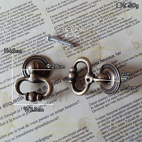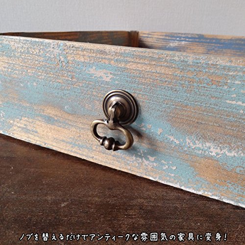 長い年月を経て変色したような味わいのある、まるでのアンティークのような古色仕上げの真鍮製取っ手です。どこかクラシカルな形のつまみが付いていて、掴みやすいデザインが特徴的。一点一点手作業で作られているので、それぞれ微妙に形や大きさ、色味が違っていて、その不揃いなバランスがハンドメイドならではの温もりがあります。真鍮ならではくすんだ輝きが魅力的で、屋外での使用でも錆びず、使えば使うほど味が出てくるのも嬉しいですね。わざと施されたアンティーク加工もとっても素敵な風合いで、外国の田舎町やパリのアパルトマンで使われているようなお洒落な家具のような雰囲気に。アンティーク商品に興味はあるけど、高そうで手が出ないそんな方に。取り付けも簡単なので、憧れのアンティーク家具もこんなに手軽に手に入れることができるんです。使い慣れた家具の引出しや扉のつまみを少しだけおめかしして、エレガントで上品なライフスタイルを楽しみましょう※1ヶです。