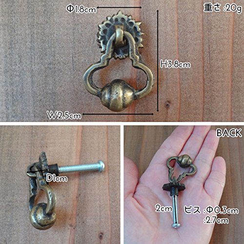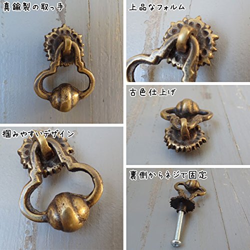 長い年月を経て変色したような味わいのある、まるでのアンティークのような古色仕上げの真鍮製取っ手です。小振りで上品なフォルムで、掴みやすいデザインが特徴的。一点一点手作業で作られているので、それぞれ微妙に形や大きさ、色味が違っていて、その不揃いなバランスがハンドメイドならではの温もりがあります。真鍮ならではくすんだ輝きが魅力的で、屋外での使用でも錆びず、使えば使うほど味が出てくるのも嬉しいですね。わざと施されたアンティーク加工もとっても素敵な風合いで、外国の田舎町やパリのアパルトマンで使われているようなお洒落な家具のような雰囲気に。アンティーク商品に興味はあるけど、高そうで手が出ないそんな方に。取り付けも簡単なので、憧れのアンティーク家具もこんなに手軽に手に入れることができるんです。使い慣れた家具の引出しや扉のつまみを少しだけおめかしして、エレガントで上品なライフスタイルを楽しみましょう※1ヶです。
