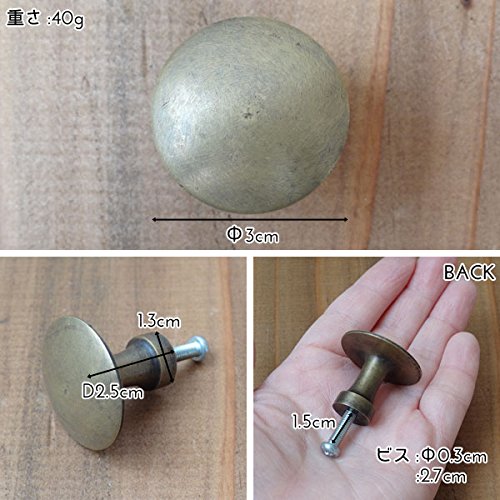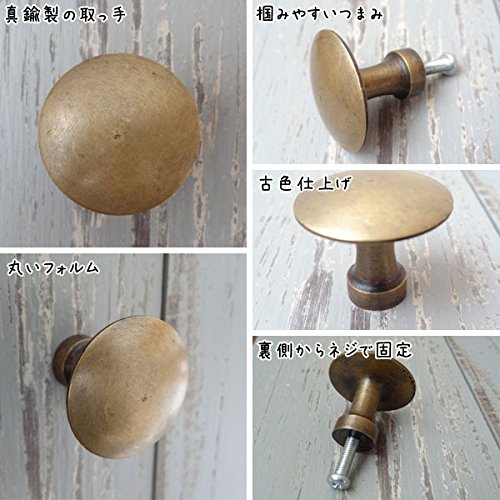 長い年月を経て変色したような味わいのある、まるでのアンティークのような古色仕上げの真鍮製取っ手です。掴みやすい、ぷっくり丸くて可愛いフォルムが特徴的。一点一点手作業で作られているので、それぞれ微妙に形や大きさ、色味が違っていて、その不揃いなバランスがハンドメイドならではの温もりがあります。真鍮ならではくすんだ輝きが魅力的で、屋外での使用でも錆びず、使えば使うほど味が出てくるのも嬉しいですね。わざと施されたアンティーク加工もとっても素敵な風合いで、外国の田舎町やパリのアパルトマンで使われているようなお洒落な家具のような雰囲気に。アンティーク商品に興味はあるけど、高そうで手が出ないそんな方に。取り付けも簡単なので、憧れのアンティーク家具もこんなに手軽に手に入れることができるんです。使い慣れた家具の引出しや扉のつまみを少しだけおめかしして、エレガントで上品なライフスタイルを楽しみましょう※1ヶです。