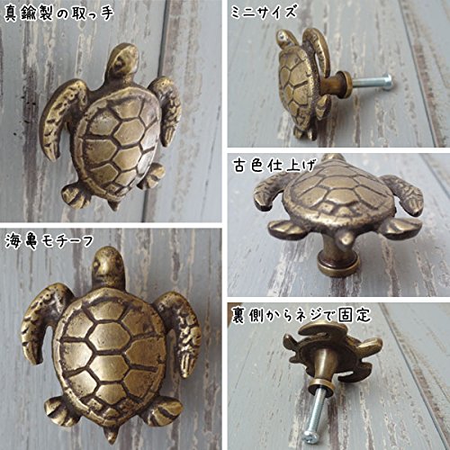 亀デザイン アンティーク調真鍮製つまみ カメ