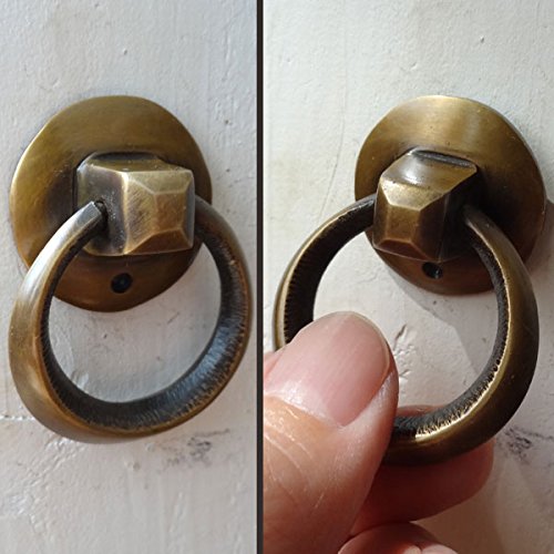 長い年月を経て変色したような味わいのある、まるで本物のアンティークのような古色仕上げの真鍮製取っ手です。 アンティーク感のある真鍮は和風テイストにもヨーロピアンテイストにもマッチする多種多様に使えるブラスノブです。 つかみやすい実用的な持ち手と、飽きの来ないシンプルなデザインが特徴的。 裏側をビスで固定するだけですが、台座に釘を打ち込んでしっかり固定します。 ひとつひとつ手作りされているので、それぞれ表情が違うのもハンドメイドならではの温もりがあります。 真鍮なので屋外での使用でも錆びず、使い込む程に味が出てくるので、長い間楽しむことができます。 今使っている家具のノブを一つ替えるだけで印象がぐんと変わります。 お気に入りの家具や小物の雰囲気をぐっと引き立ててくれます。