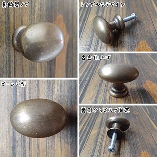 年月を経て変色したような味わいのある、まるで本物のアンティークのような古色仕上げの真鍮製取っ手です。 アンティーク感のある真鍮は和風テイストにもヨーロピアンテイストにもマッチする多種多様に使えるブラスノブです。 掴みやすい、ぷっくり可愛いビーンズのフォルムが特徴的。 ひとつひとつ手作りされているので、それぞれ表情が違うのもハンドメイドならではの温もりがあります。 真鍮なので屋外での使用でも錆びず、使い込む程に味が出てくるので、長い間楽しむことができます。 今使っている家具のノブを一つ替えるだけで印象がぐんと変わります。 お気に入りの家具や小物の雰囲気をぐっと引き立ててくれます。